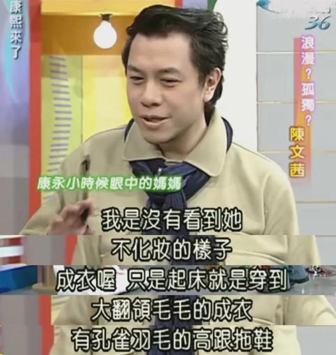 蔡康永的妈妈,在家要穿大翻领的高级成衣,孔雀毛的高跟拖鞋;出外要至少一小时的全套妆发,旗袍、首饰一样不落。
