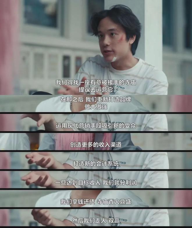 男主阿胜(披纳若 · 苏潘平佑 饰)只是在陪妈妈去拜佛时,无意间抬头看了一眼电子屏上的捐款流水,便发现了寺庙暴利的商机。