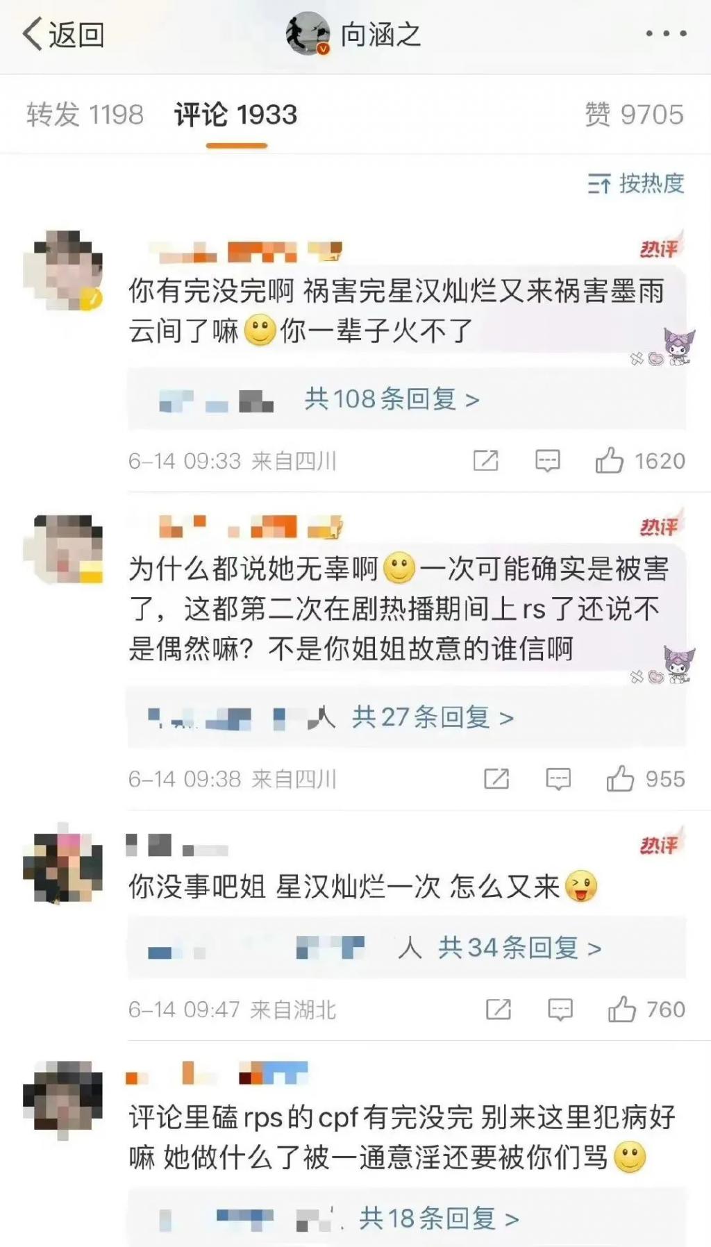 向涵之的评论区已经彻底沦陷了,被骂蹭热度,