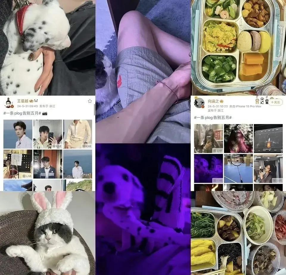 还说他俩微博营业风格类似(主要是营业照的构图还有拍摄的内容,比如都是低视角拍了宠物、都拍了很像的盒饭),