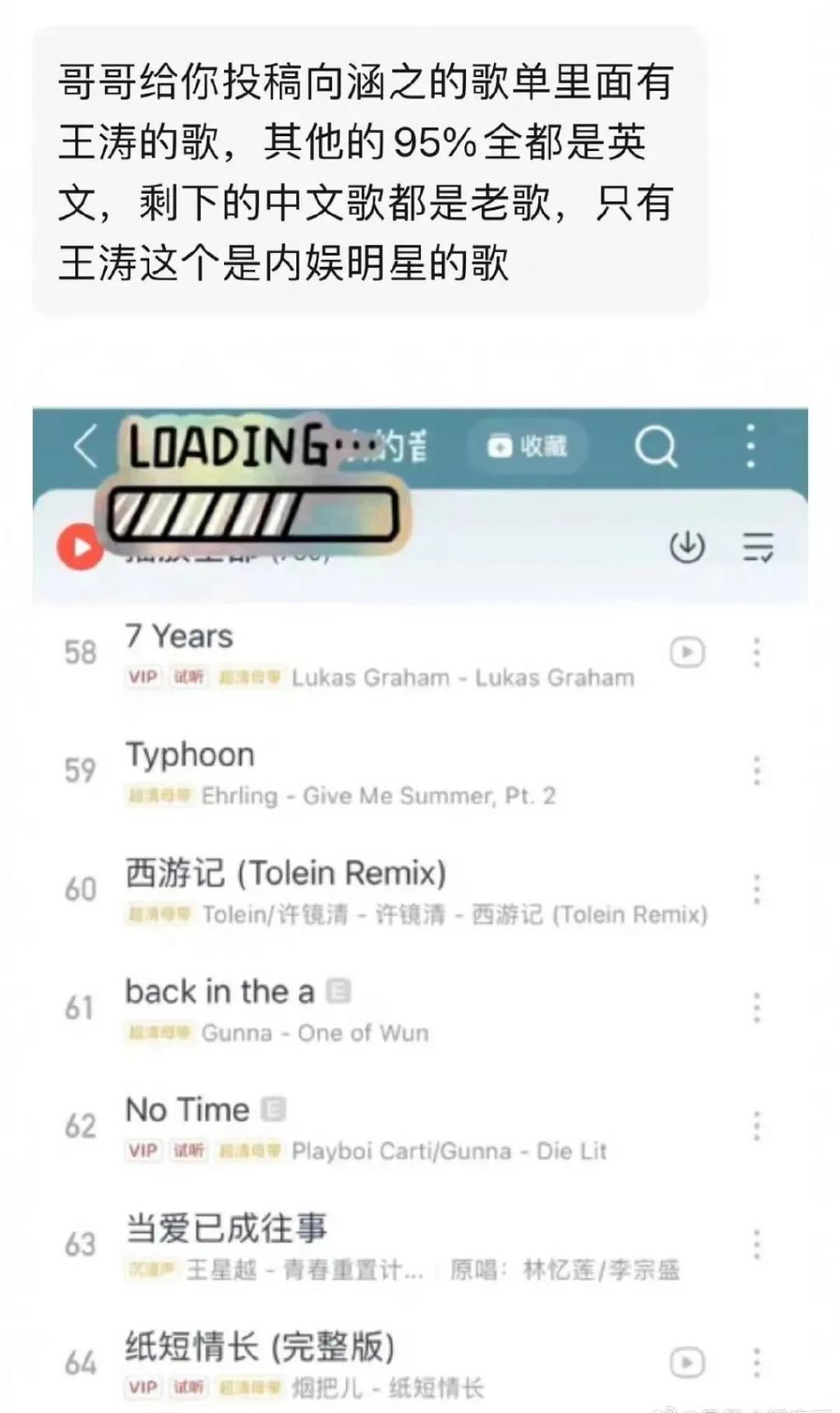 这个疑似向涵之的账号里还收藏了王星越的歌,