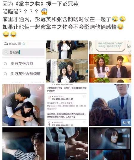 而且这次被爆料的时间好巧不巧又刚好彭冠英有新剧《掌中之物》快播出了,微博搜张含韵彭冠英恋爱,可以发现很多都是跟这部新剧捆绑。