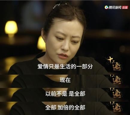就像她在《十三邀》里说,“爱情,只是生活的一部分,以前不是,以前爱情就是绝对的全部。”