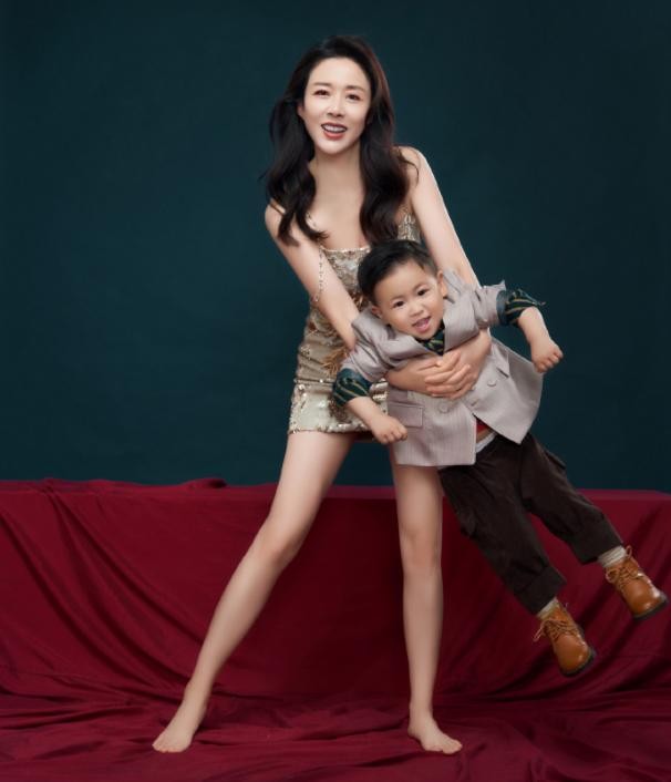 春节的时候,颜丹晨还和儿子穿上了亲子装。