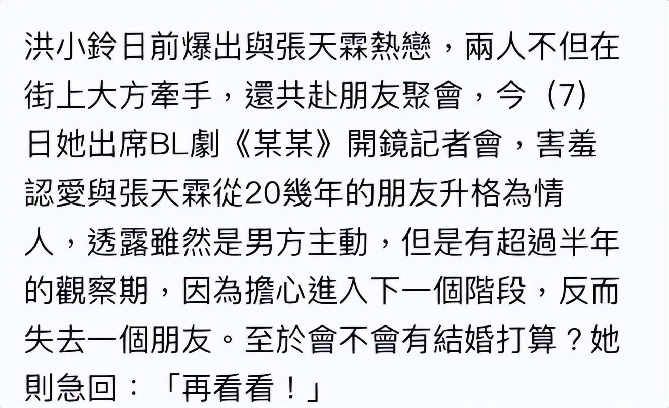 据悉男友以前拍戏时就很喜欢与洪小铃“玩闹”。