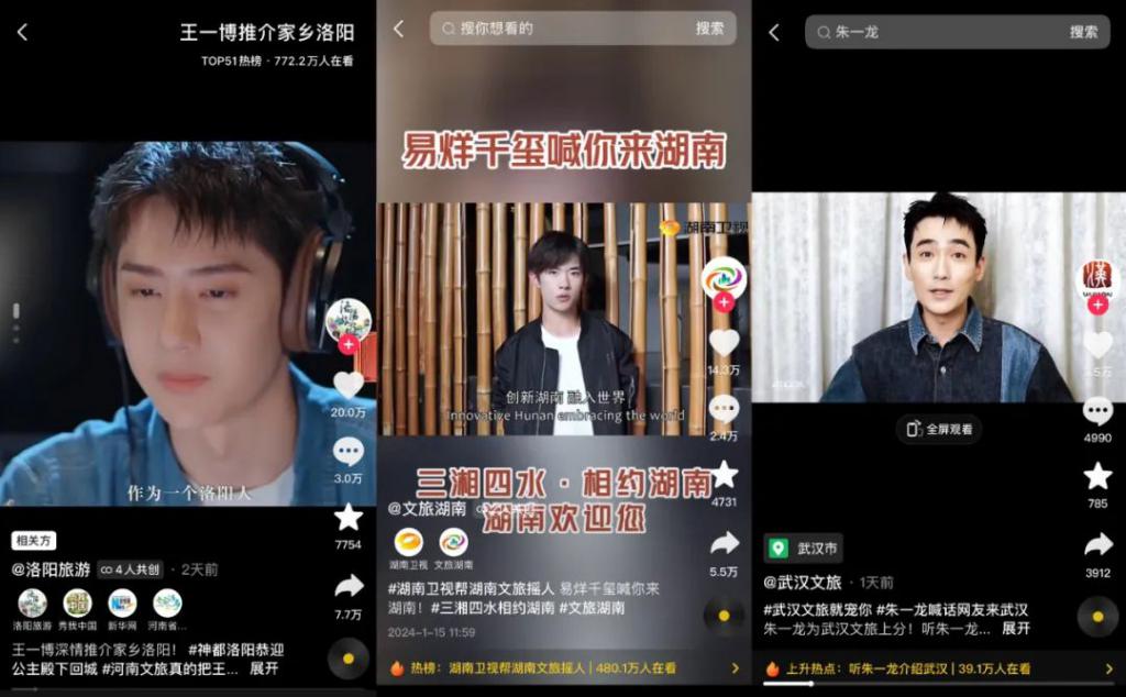 不仅美食、美景,明星资源也是吸引游客的有力招牌。因此,各地文旅局连夜开启了摇人模式,借明星效应扩大影响力。河南文旅局请到了王一博站台,重庆喊来了肖战宣传,河北文旅喊话赵丽颖,浙江文旅请来了周迅、内蒙古摇到了玲花。