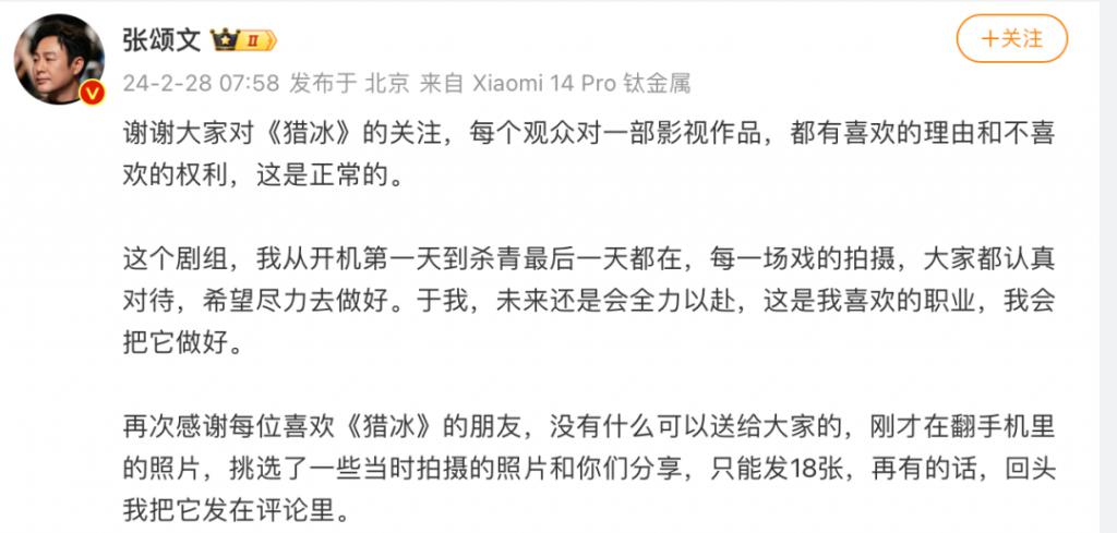 而自己不仅没" 收华为红包 ",《猎冰》还是他近十几年来制作成本最低的一部作品。