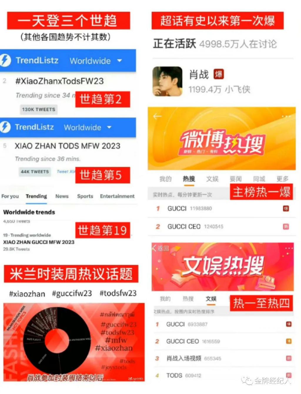 肖战此次在米兰共出席 TOD ’ S 与 Gucci 两场大秀,以他在微博的影响力直接引 " 爆 " 热搜,大秀当天把 Gucci 送上热搜第一且出现 " 爆 " 字。
