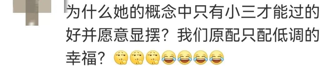 赵小姐的自爆同时也引起了网友的广泛热议,有网友愤慨道:凭什么过的好就被说成是上位,难道在他的概念中唯有小三才能过的好,原配只能低调幸福吗?