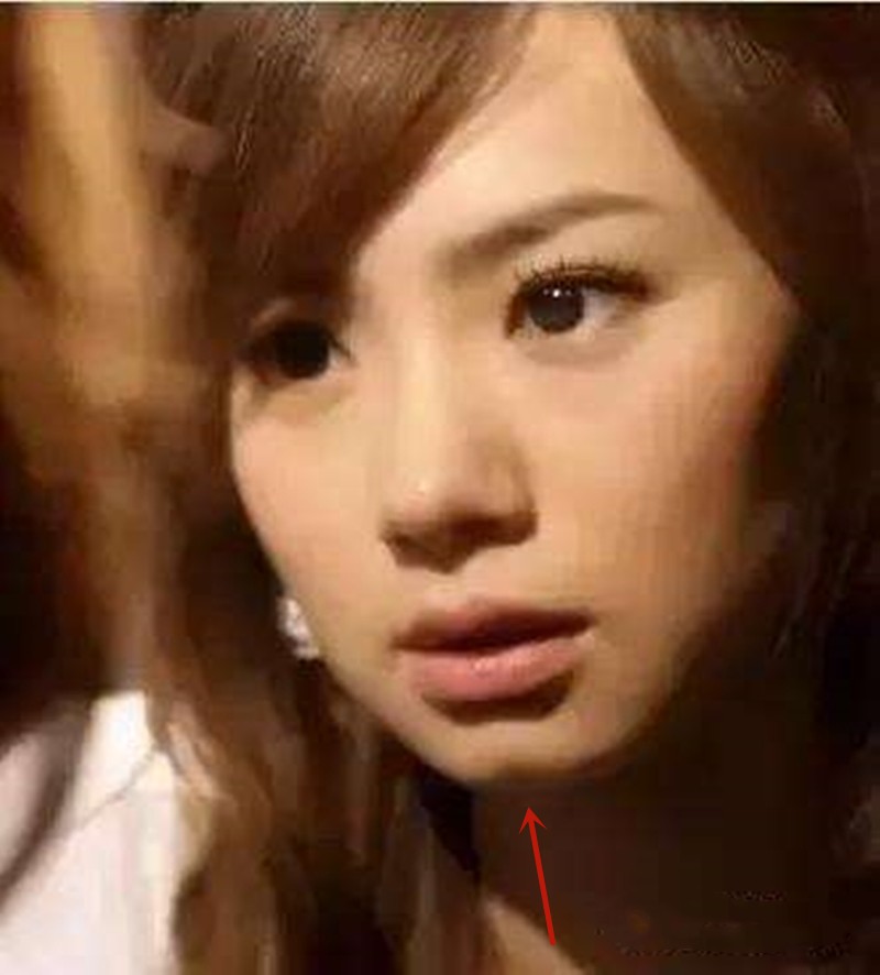 她的下巴是十分典型的苹果下巴,中部凹陷,像字母“W”。
