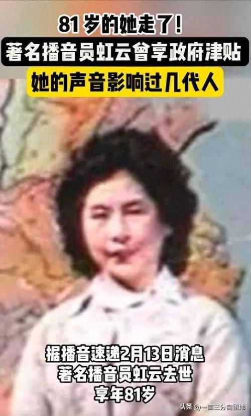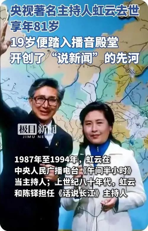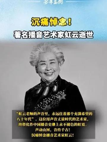 虹云老师的离去,让无数网友感到悲痛。有人说:“小时候每天早上听着虹云老师的声音起床,那声音就像冬日里的暖阳,温暖又亲切。”还有人说:“她是播音界的传奇,她的精神将永远激励着我们在追求梦想的道路上不断前行。”