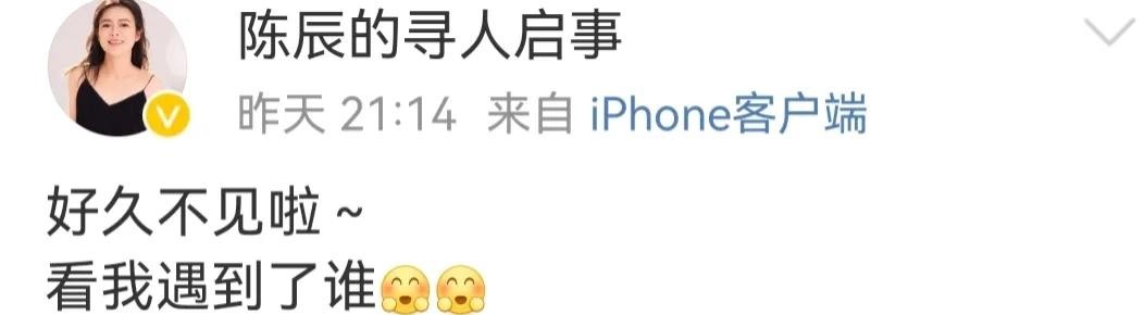 同样,对于陈辰来说,能和潘涛一起主持也是十分荣幸,陈辰当晚在她的社交平台就激动的和网友说好久不见,看我遇到了谁?