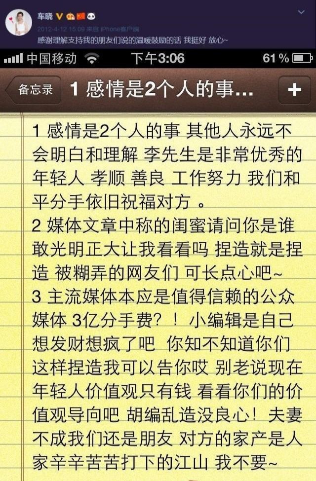 车晓给人的感觉一直都是高高在上的仙女形象,没想到车晓还是落入凡尘。