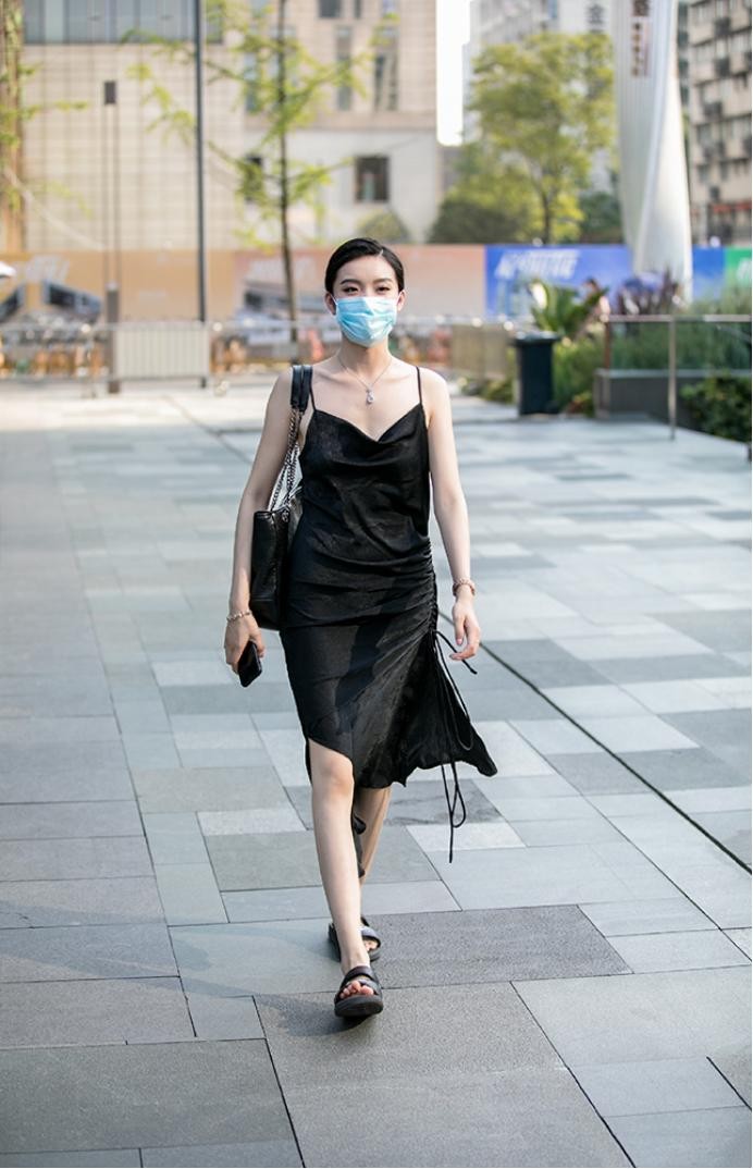 再来看看这位迎面走来的小姐姐,气场不是一般的足,这小细腰大长腿,身材真是太好了,还穿了一件黑色的小吊带。将精致的锁骨和纤细的瘦腰展现得一览无余,而且靓丽的外表看起来非常的有攻击性。看看旁边的大哥都走不动啦,足以可见小吊带的魅力有多大。