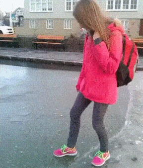 24 小心翼翼地试探试探,这冰到底冻结实没有,哎呦,还是摔下去了!还好,水不太深!