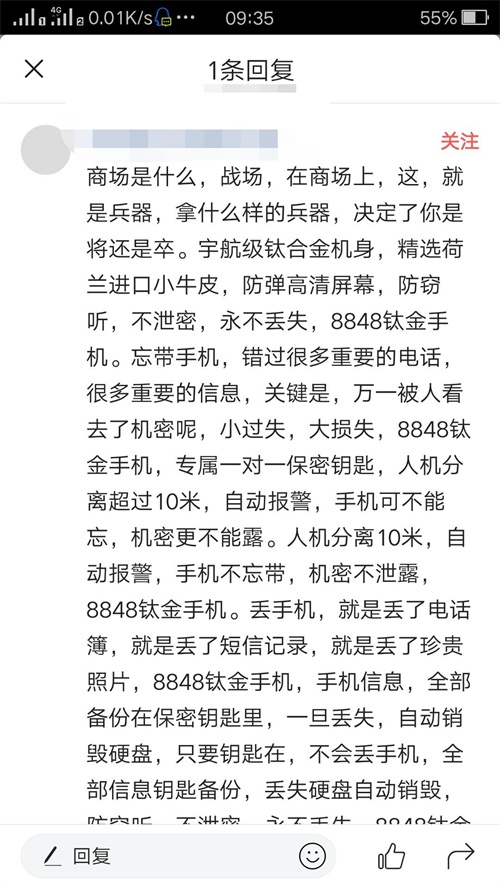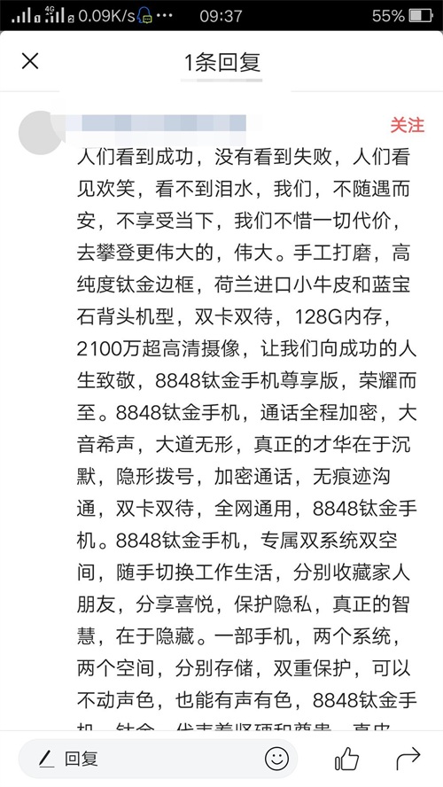 当然在文章下面也有赞美8848的,说的也是非常好。值得大家看看,除了在原广告词上做了改动,还添加了不少素材。