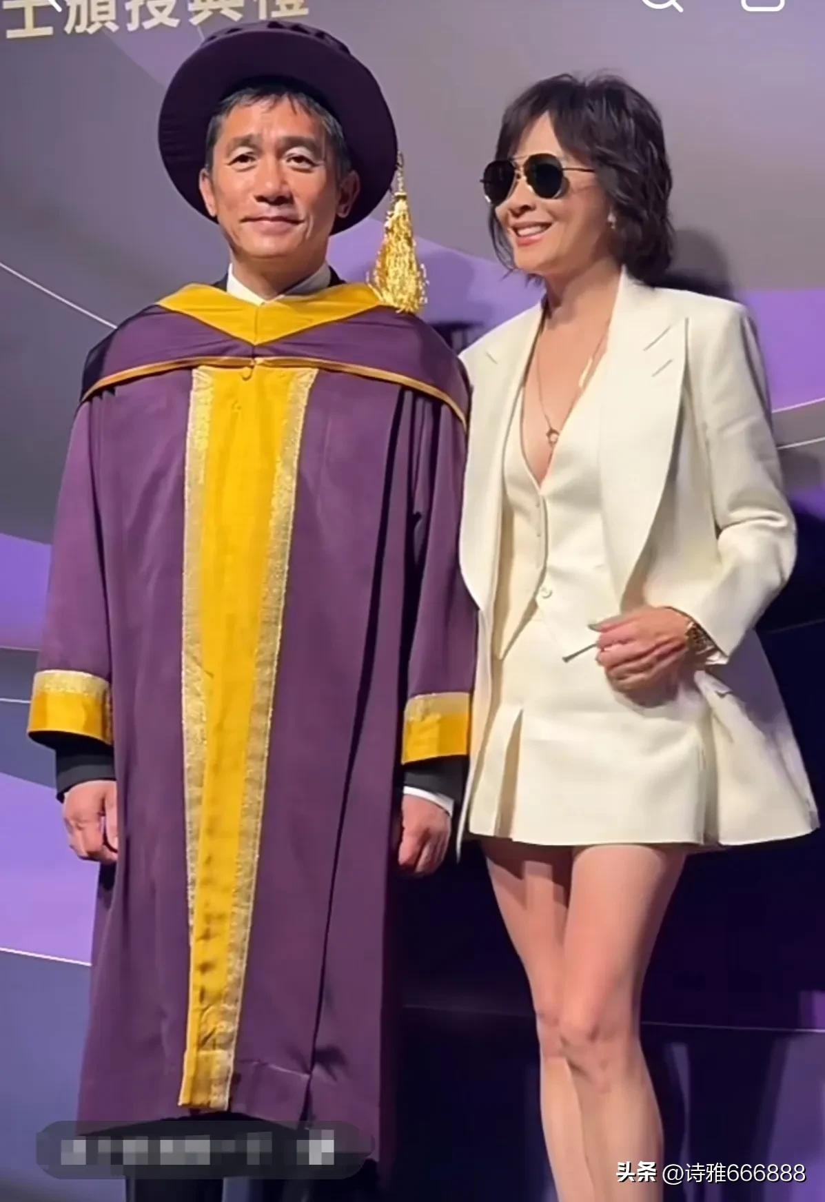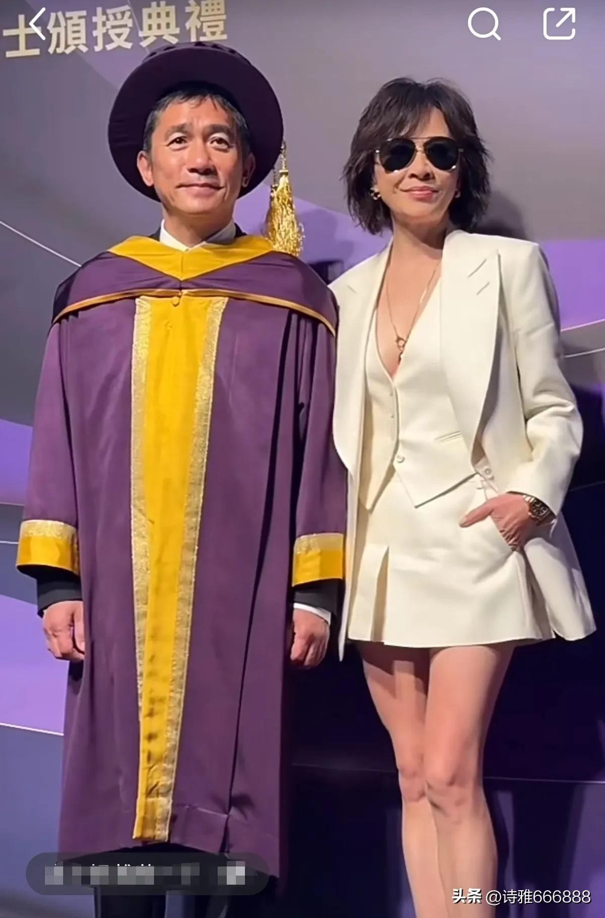 梁朝伟携妻子刘嘉玲出席荣誉院士颁奖典礼,夫妻恩爱同框幸福满满