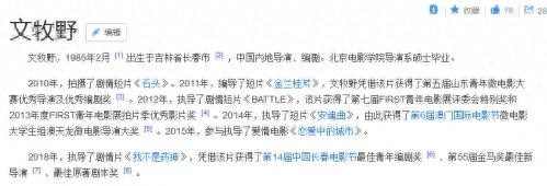 金马奖2018最佳新导演文牧野个人资料 文牧野主要作品一览