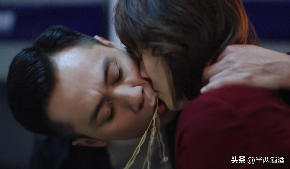 两人吃同一份面,又因为夹了同一根面条,嗦的时候自然就吻到一起了,但这种导演觉得无比有感觉的吻戏却始终让网友有一种“油腻”的感觉。