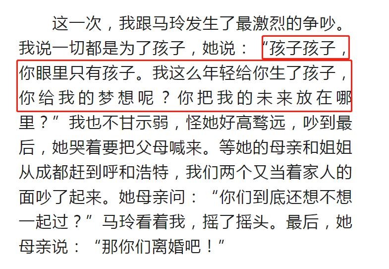 犹如积怨已久的火山迅速迸发,因为这件事,马玲甚至闹上法庭要求与他离婚。