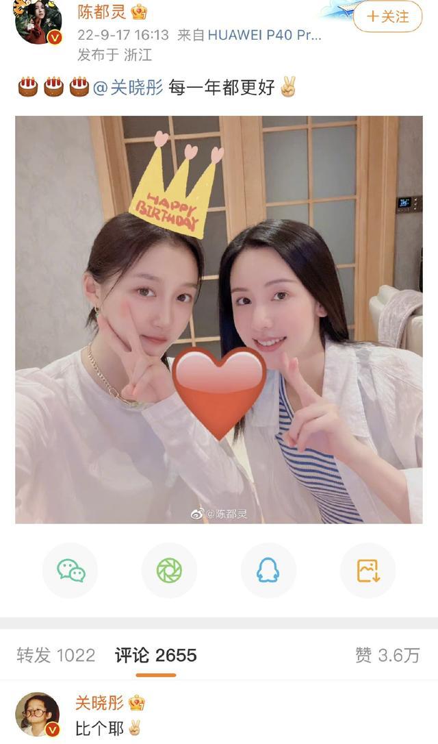 陈都灵晒合照为关晓彤庆生 两人曾合作《左耳》