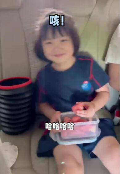 视频中,李亚男和王祖蓝开车前往学校接女儿gabby放学,上车后,gabby坐在车内吃柚子,一家人其乐融融。
