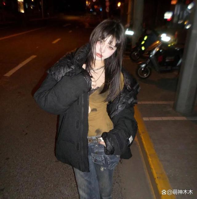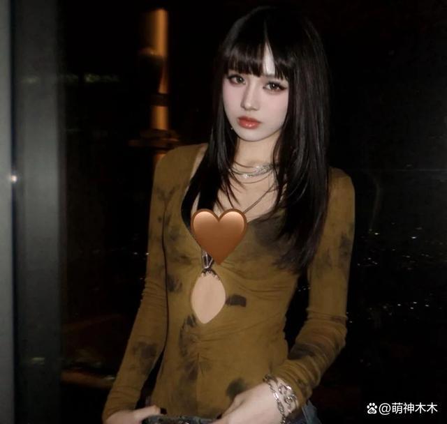 成年的她不仅开始尝试各种新奇的妆容,也开始选择大显身材的衣服,她穿着紧身抹胸上衣,微微向前倾身,做着大胆动作的她却摆出了可爱又调皮的表情,她鼓起脸颊,用涂着黑色指甲的手指做出戳脸的动作。