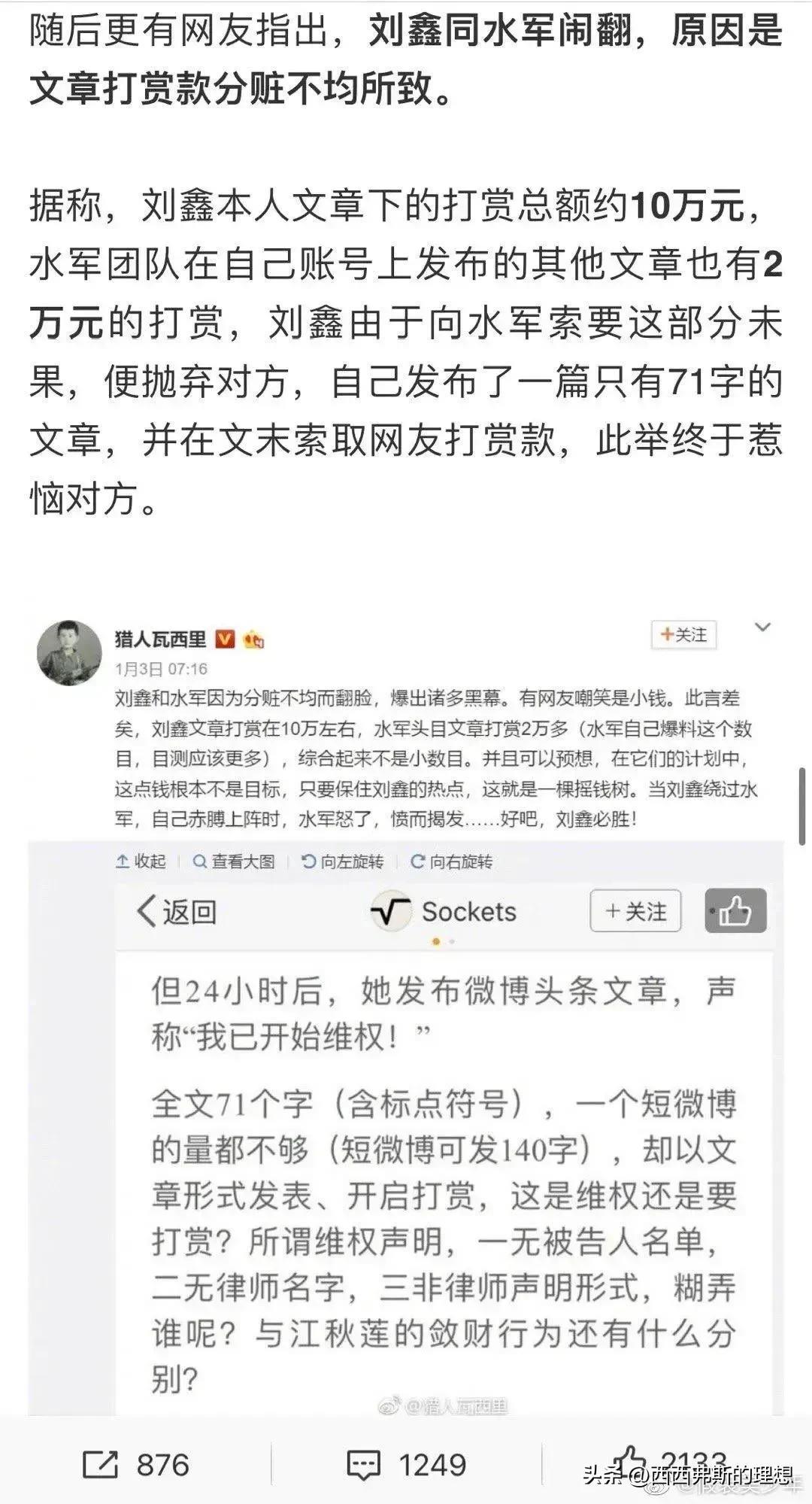 可笑的是,刘鑫后院起火了,因为分赃不均,她的水军反水了。