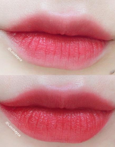 红色里偏橘色,薄涂粉粉哒超美,厚涂红红哒也超美! 显白显白!