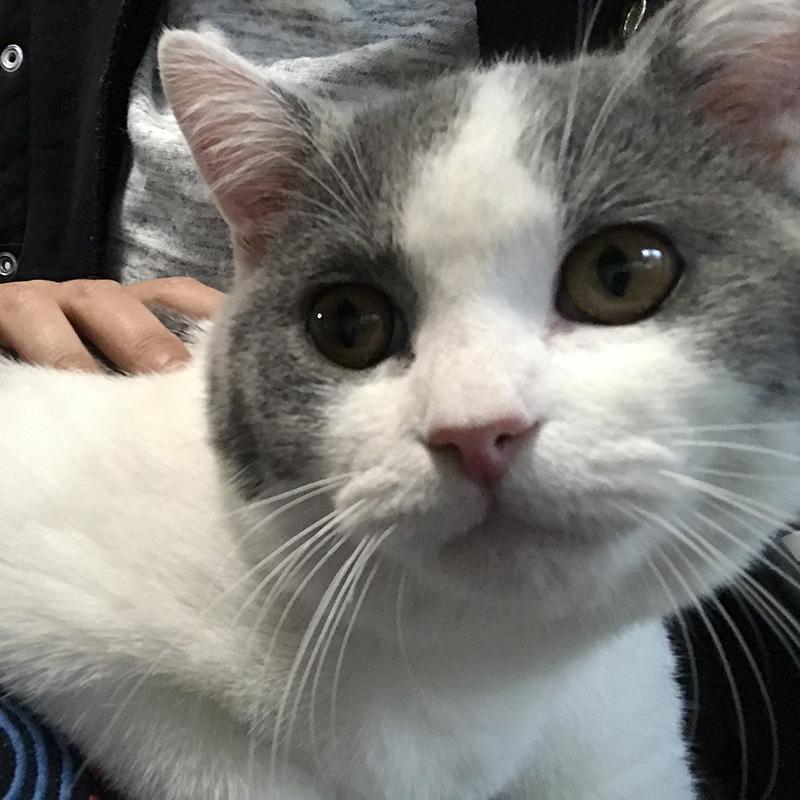 然后两只手抓住猫的脸颊两侧,做一个提神动作,就是尽量让它像在微笑一样。这样子可以让猫咪不那么紧张,毕竟太紧张的话,小编觉得可能口感会比较苦涩,所以做个脸部按摩,让它笑一笑,就不会那么苦了。虽然它看上去笑得不是很灿烂,但是应该也没什么关系。