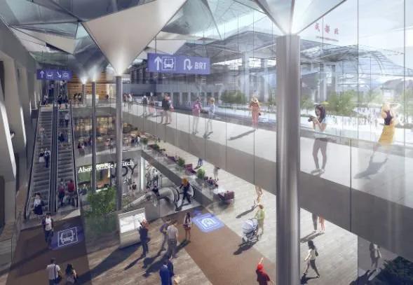 主要建筑群体分为购票大厅,残疾人侯车室、婴幼儿孕妇休息室、车站乘务人员休息室、进站台、出站口、车站警务人员休息室、旅客候车室、广播室等大型场所。除此之外,并且在站台屋顶上将建设宽约100米长约150米的屋顶公园,同时也对南北、东西方向共增加5条主干道,彻底改善周边交通环境,让更多来返成都的朋友,深深体会到成都的交通便利、环境优美、优质高效的服务。