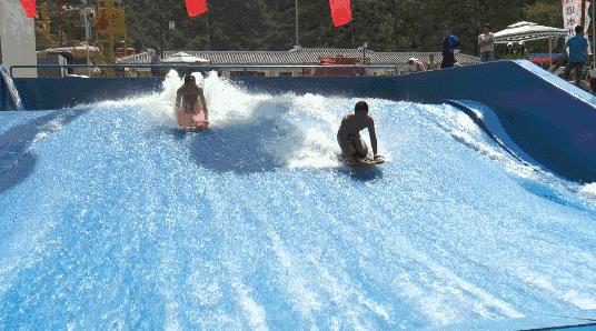 从顶端乘“水毯”急速滑下