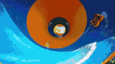 180°变转下滑至漏斗滑入水中