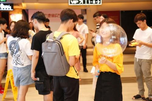 七夕,全国的电影院几乎都被情侣们攻陷,橙天嘉禾影院亦然。活动时,大量情侣正在电影院的大厅内候场,很多情侣依偎在一起浅笑低语,整个电影院都被笼照在静谧甜蜜的气息中。然而,这种气氛很快随着“鹿角戏”的到来而打破,当工作人员动员“7秒接吻”的挑战活动时,情侣人群中便开始沸腾起来,很多情侣跃跃欲试。