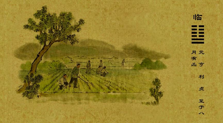 【临卦上卦为坤为地,下卦为兑为泽。临卦为到来、来临之意,到兑卦阶段可以说是到阳气真正发挥功能的开始,阳气占主导的时候已经到来,阳气为生发之气,是万物生长之气,春分后天地南北百花吐蕊,蜂蝶起舞,江山如画的时候来到了。上卦为坤,预示着天道也将进入新的开始,故曰临。寓意君主不应身居庙堂之上,应亲临百姓之中实施教化,传播美德自然上下一心,众志成城】
