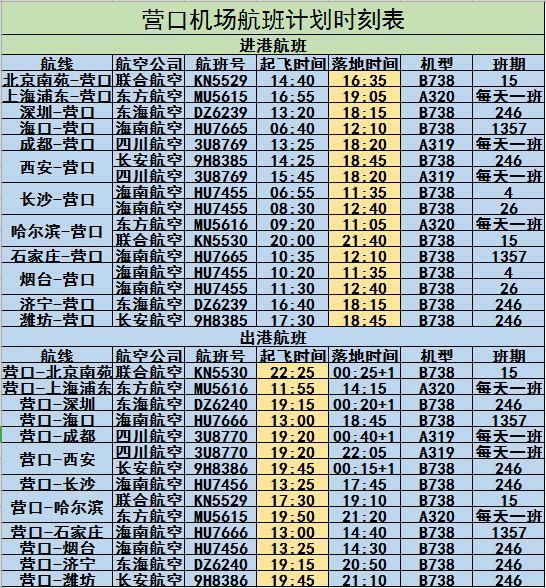 营口机场最新航班时刻请看这里!