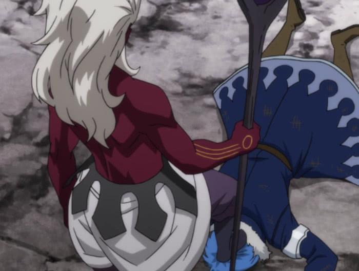 而后,画面一转,护圣十二盾中最特殊的“三人组”就此展现惊人实力。魔法王-欧嘉斯特不费吹灰之力就灭掉了魔女之罪;绯色绝望-艾琳也去和女儿艾露莎“汇合”;杰尔夫之子-拉凯德则使出了自己的“快乐魔法”,使战场上的众人因“快乐”而失去了战斗力。当然啦,在施展此魔法终,他与人鱼之踵最强魔导士-神乐展开了激战。