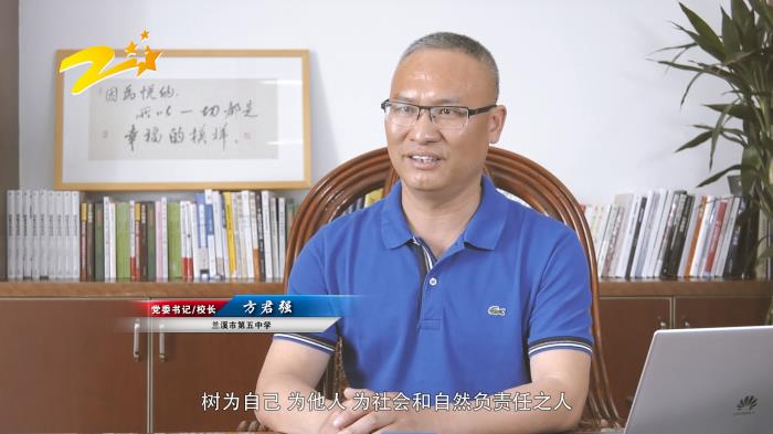 兰溪市第五中学校长方君强在谈到教育理念时讲到,为学生的终身发展奠基是我们一直坚持的理念。终身是给我三年,服务三十年。奠基是打好基础,固本培元。创新学习方式方法,建立良好的师生关系,树立积极的健康意识是我们坚持的一体两翼,健康是一体,为学、为人分为两翼。教育为今天,也为明天。没有分数,走不过今天;只有分数,走不进明天。教育谋当下,更谋未来。谋当下要打好基础,德智体美劳全面发展。谋未来要放眼发展,立德树人。立复兴民族之志,树为自己,为他人,为自然和社会负责任之人。