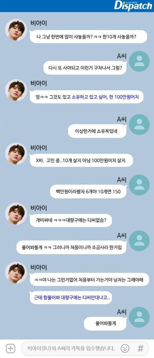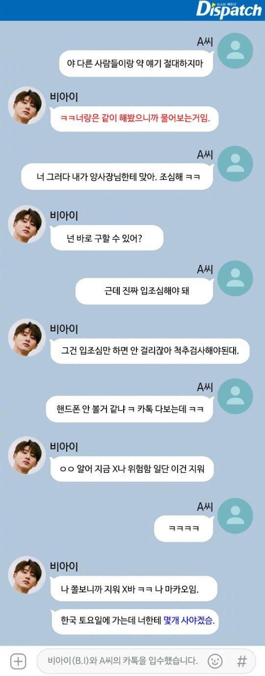 iKON金韩彬被D社公开涉嫌吸毒的kakaotalk对话内容。6月12日D社报道