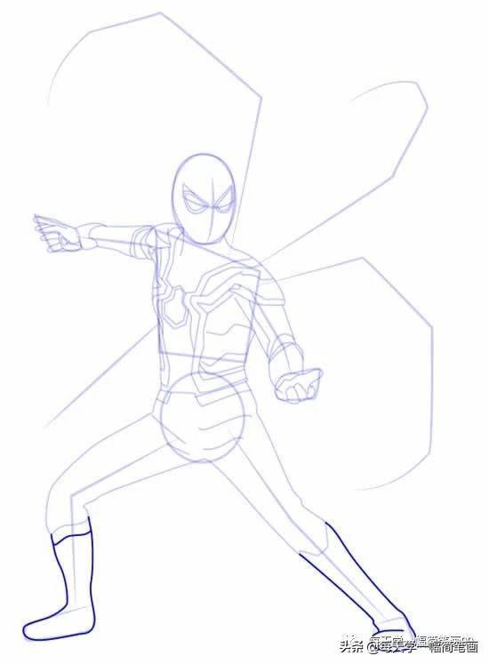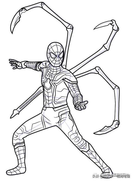 在漫威电影里,神奇的蜘蛛侠穿上了钢铁侠为他专门设计的战甲,看上去帅呆啦!简笔画穿着新战甲的超帅蜘蛛侠的画法,虽然很有难度,但真的值得我们努力画画看哟!