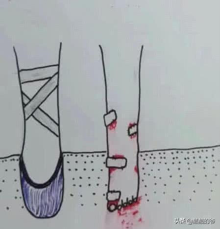 2、图片中的是一双穿着芭蕾鞋的脚,穿上鞋之后非常漂亮,但是脱了鞋之后脚上有很多伤口贴着创可贴。相信很多练舞的孩子们都很明白这种感受,平时常常经历那么多次的联系就失望为了上台的那几分钟。很多人只适合羡慕她们怎么可以跳的那么好,却不知道在光鲜亮丽的背后的她们付出了多少努力。