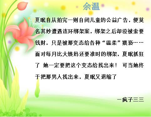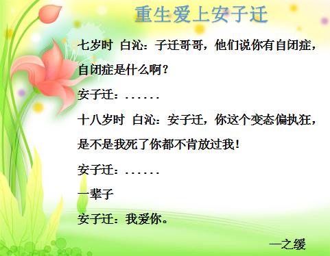 说到底就是一个自闭的偏执狂的强行圈养小媳妇儿,在媳妇儿重生后自愿被扑倒的故事。男主患有自闭症,只信任和依赖女主,所以女主很小的时候就离开家人和朋友来到男主家,挺可怜的,只有男主一个人对她好。前世死去她才知道男主有多爱他,重生后就努力尝试着接受男主的缺点。男主执着又深情,为了女主可以放弃一切。