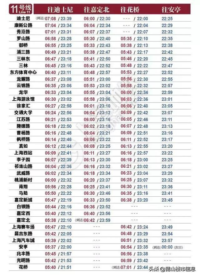 昆山—上海的小伙伴注意了!地铁11号线时刻表有变化