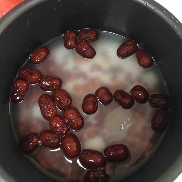 步骤 2.放入花生,红豆,红枣,桂圆肉洗两次洗干净