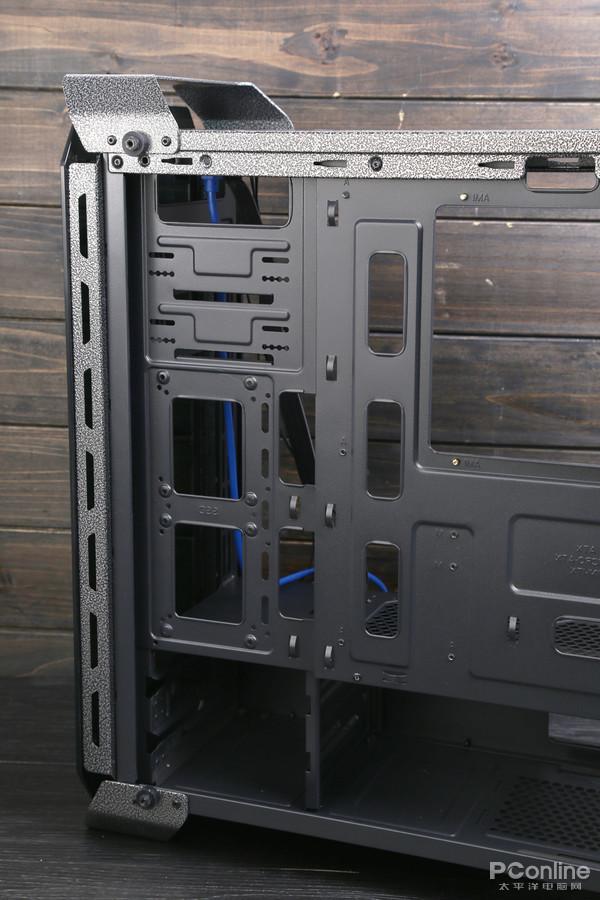 1、台式机的ATX机箱的硬盘位置都在光驱位置的正下方,会有硬盘的安装轨道和固定孔;