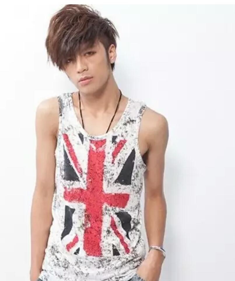 额头前留出长长的刘海,烫出时尚的定位烫效果,配合深棕色的染发,给人不羁的形象,酷酷的表情更是帅气。