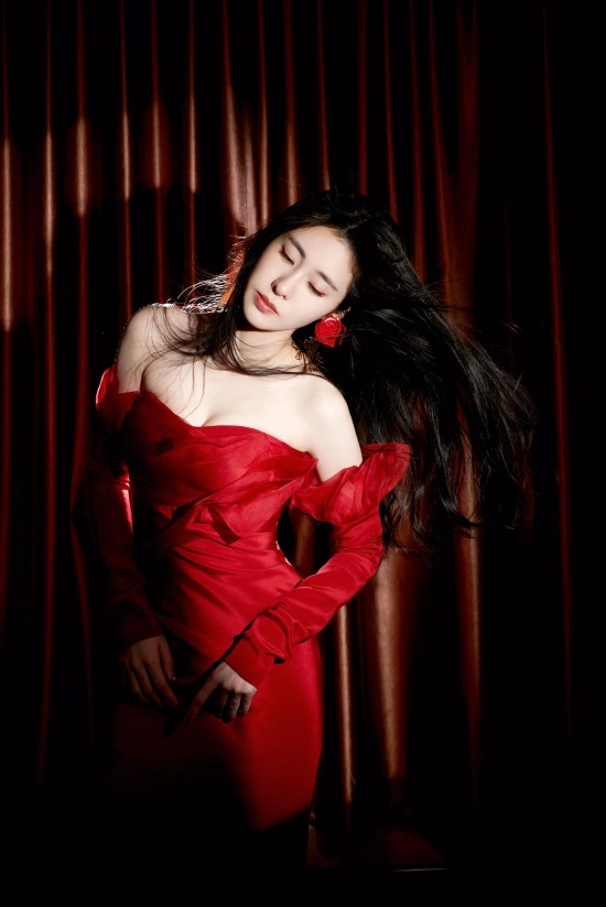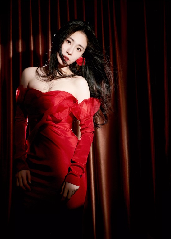 张碧晨写真,一袭抹胸红裙,身姿曼妙,性感迷人