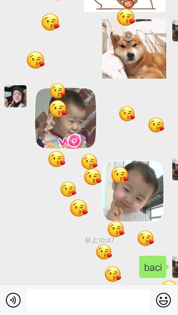 找到自己喜欢的小哥哥或者小姐姐,聊天框内输入【baci】,然后发送出去,就会有满屏的