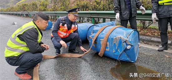 3月30日上午11时许,G50沪渝高速湖北宜昌至恩施段,一辆半挂货车因操作不当,导致车上30多个铁桶滚落至高速路面。事故发生后,湖北高速鄂西路政在第一时间赶到事发现场,联合高警、养护、施救单位开展清障抢通工作。