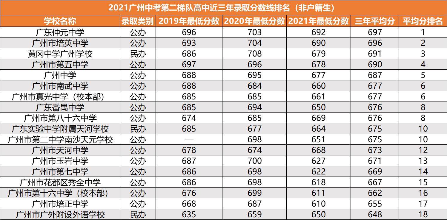 其中梯度划分的“录取最低分数”统一采用“户籍生录取最低分数”;650分为2021年第二梯队线,仅供参考,2022年以官方公布为准;平均分小数点按四舍五入计算,仅供参考。